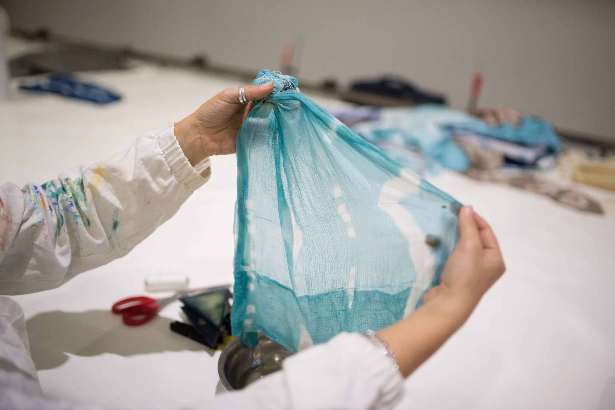 The dyeing station offers everything you need to work hands-on with color: double sinks, electric plates, big pots, brushes, spatulas, a fabric steamer to fix dyes, and a washing machine. You’re also welcome to browse the Lottozero dyeing recipe book and create your own signature shades.