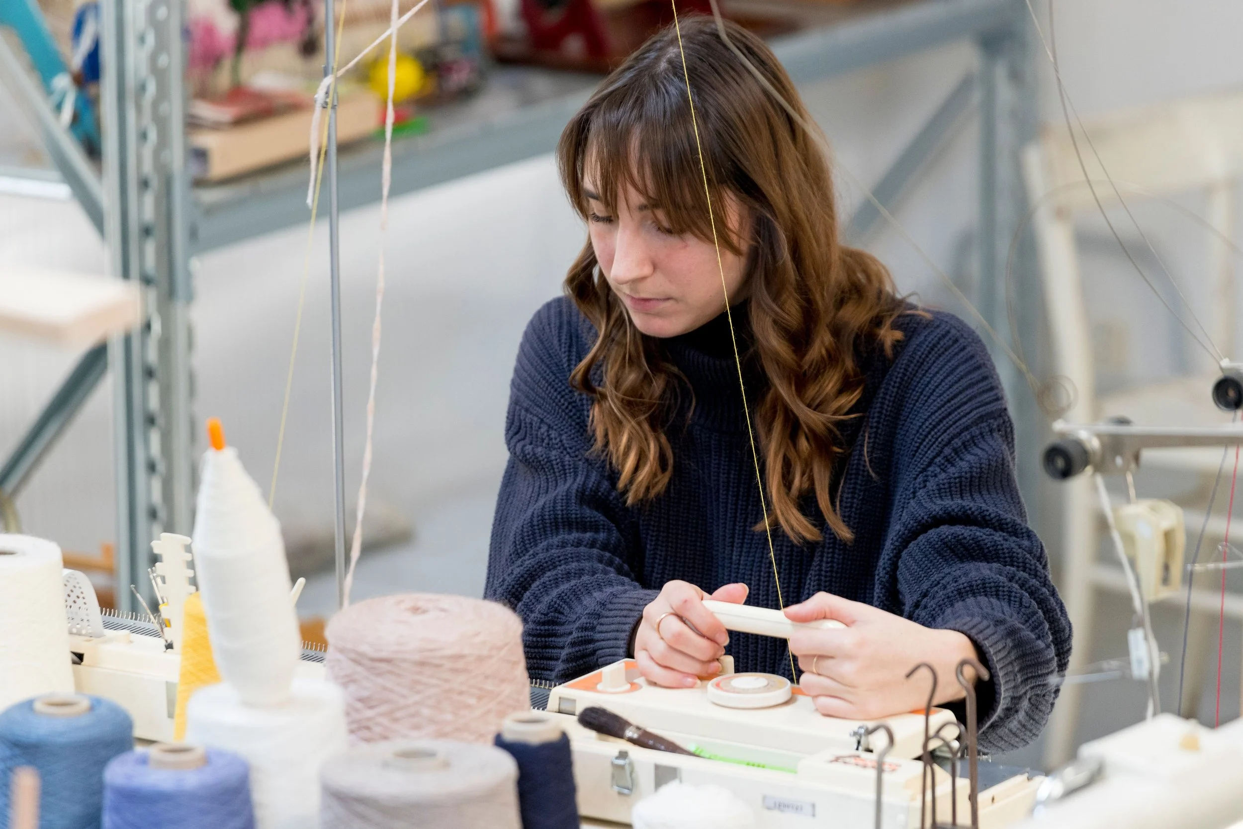 Knitting is a technique that interlocks loops of yarn to create flexible, textured fabrics. In our lab, we offer several types of mechanical knitting machines, letting you choose the right one based on the fabric structure, pattern complexity, and yarn weight you want to produce. This setup allows you to experiment with a variety of stitches, textures, and knitwear designs—from fine, delicate fabrics to chunky, structural pieces.