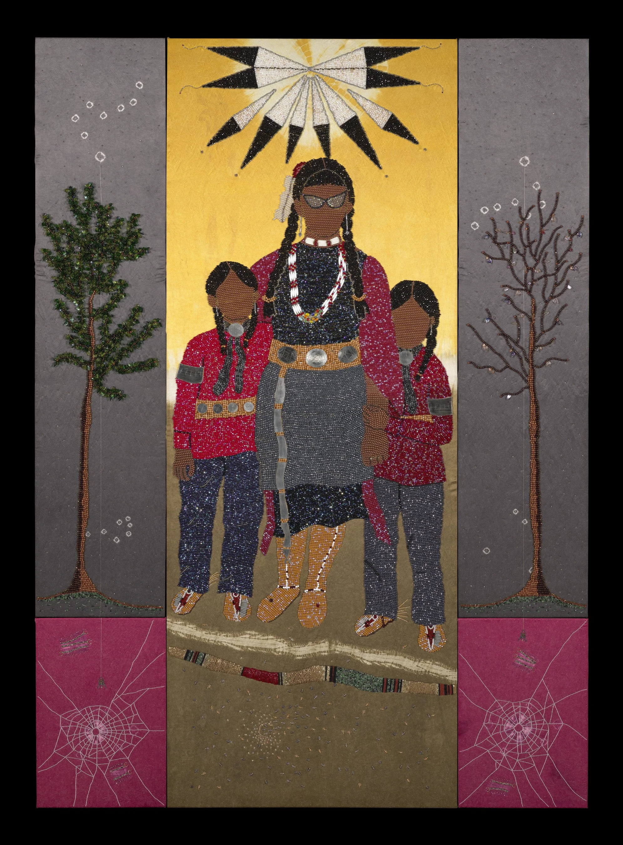 For Kiowa artist Teri Greeves, beadwork began the moment that she was born. In Sons of the Sun she uses stories from Kiowa cosmology, centered on the Half Boys, holy beings whose exploits teach valuable lessons and offer guidance to their community.