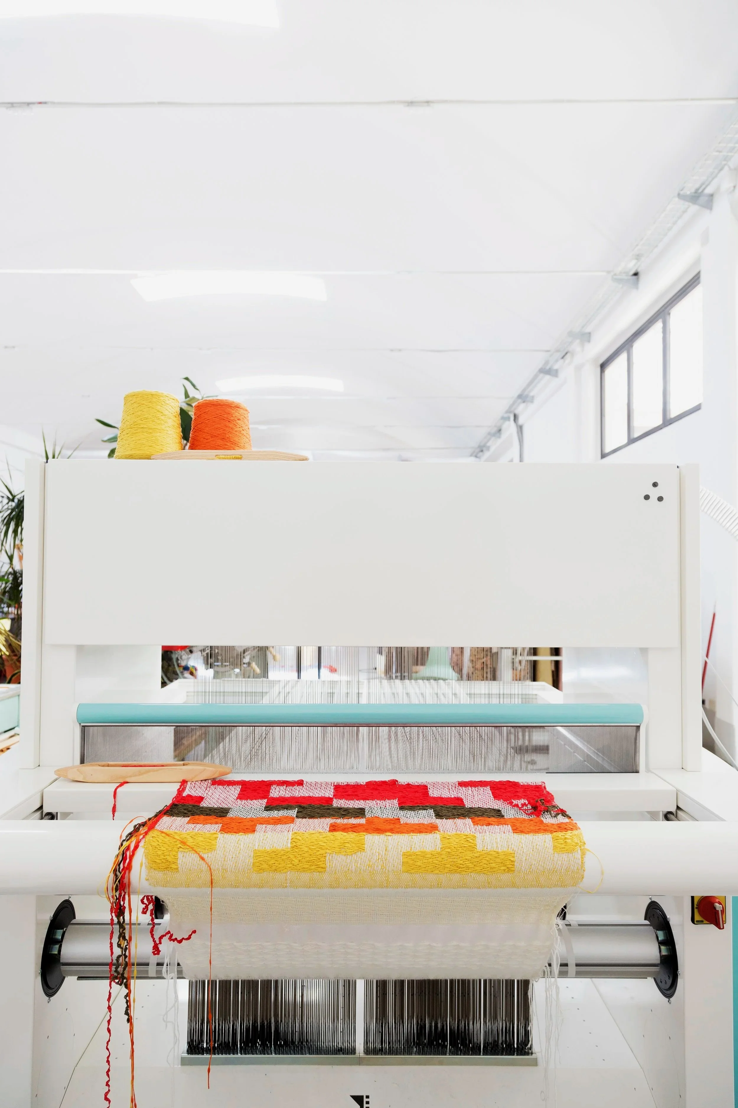 At Lottozero, our TC2 is configured with 6 modules, for a total of 1320 warp threads across 110 cm width (≈12 ends/cm), typically dressed in white or black cotton. Its modular setup can be reconfigured by users when rented for a minimum of one month, allowing full flexibility for custom, experimental, or small-batch textile production.